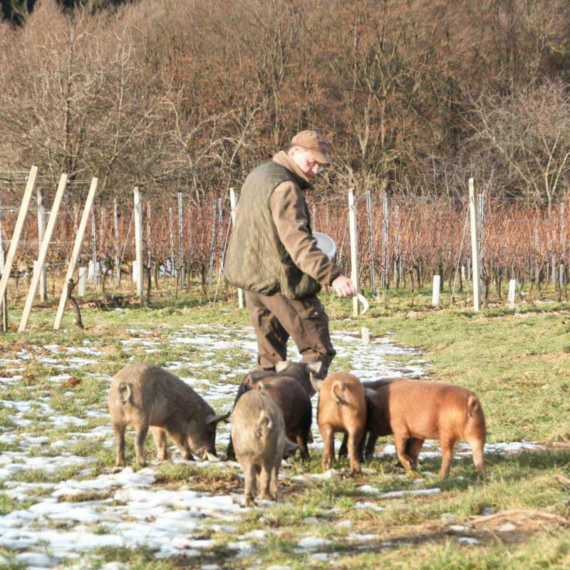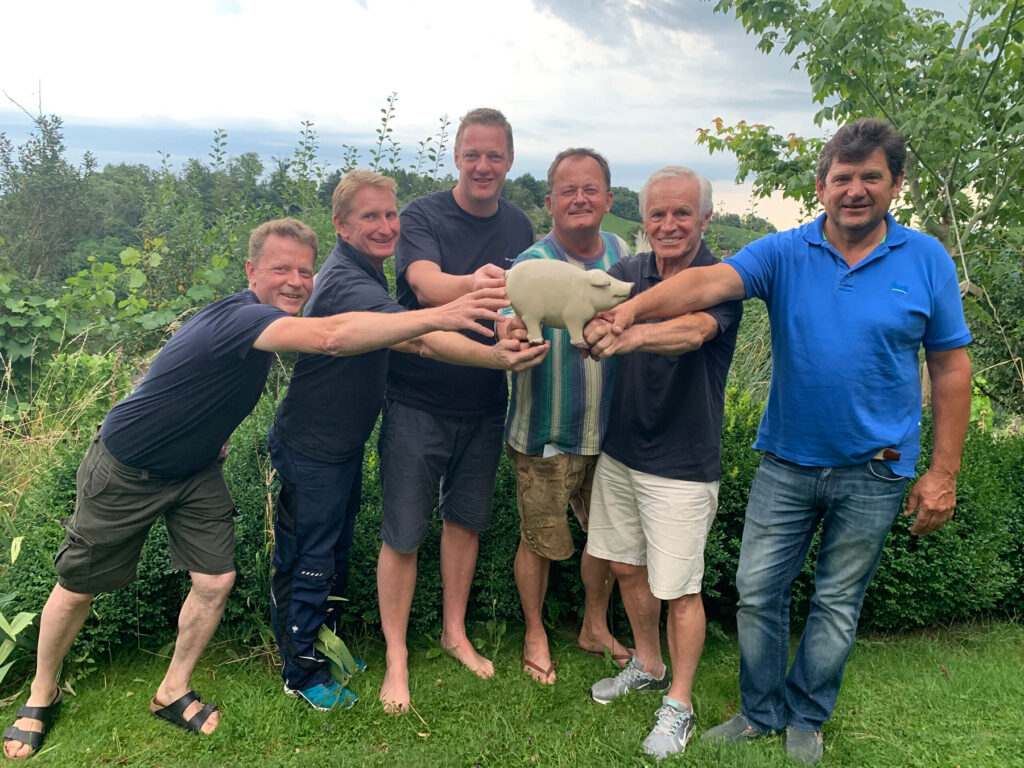 Apropos Pioniere: Dieses Vorhaben in Angriff zu nehmen, war ohne Zweifel Neuland für uns alle. Noch dazu, da sich keiner von uns davor mit der Schweinezucht beschäftigt hat. Wir alle kommen aus völlig unterschiedlichen Berufen. Kurt Stessl, unser Visionär und Taktgeber, ist im Hauptberuf Spediteur, Werner Paulitsch fertigt Maßschuhe, Stefan Prenninger ist Haubenkoch, Peter Kieslinger Weinbauer, Manfred Pollanz Techniker und Sepp Hartinger ein Spezialist für Marketing und Kommunikation. Landwirtschaftlichen Hintergrund haben wir jedoch alle bezüglich unserer Herkunft. Und: Peter Kieslinger sowie Manfred Pollanz sind darüber hinaus die Besitzer der Weideflächen, auf denen sich die meisten unserer Gehege befinden. Was uns aber alle sehr eng verbindet, ist unsere Leidenschaft, es gut zu machen. Und das gelingt uns. Verdammt gut!